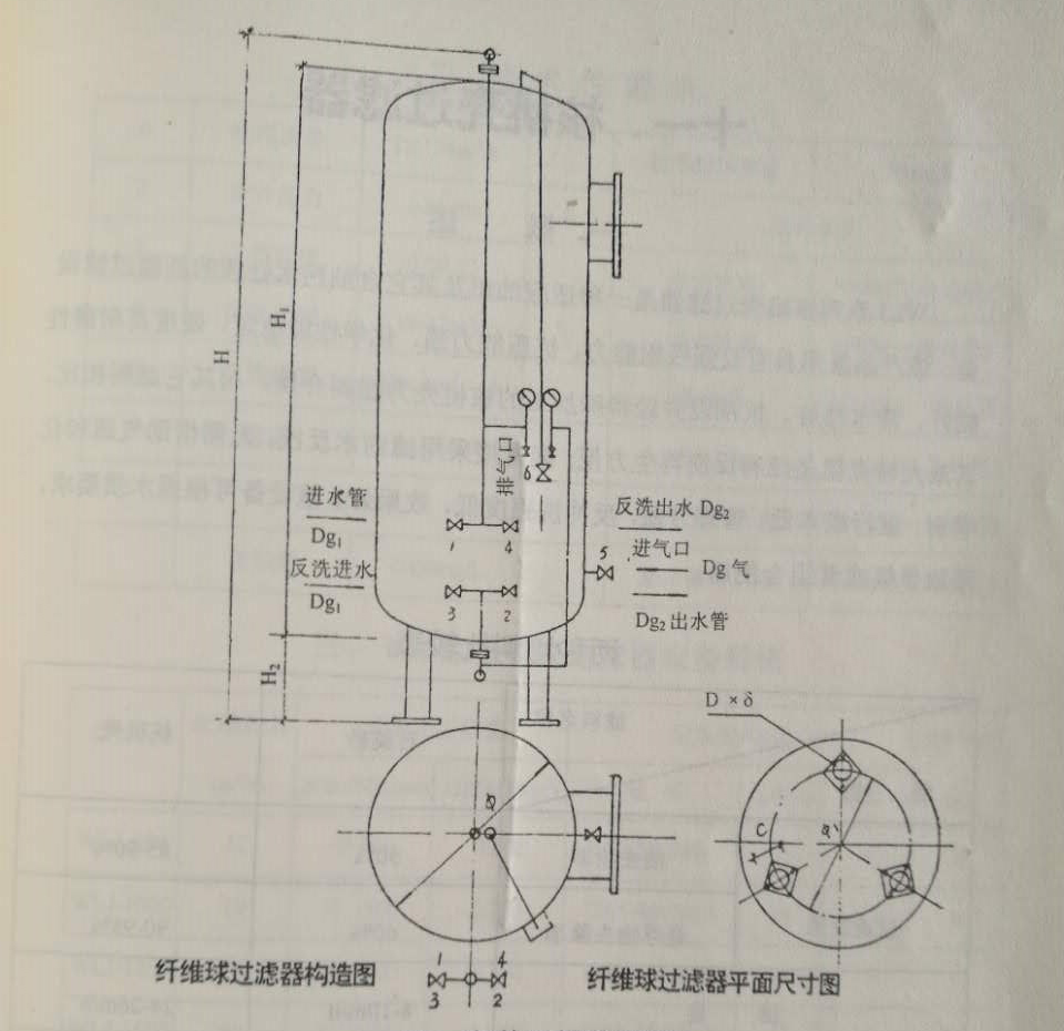 1、安裝時,先按設計要求就位,并連接管道閥件,通水試壓合格后(試驗壓力為5x10'Pa),泄空罐內水,打開入孔蓋板,裝入纖維球濾料,封好入孔蓋板,啟動水泵,用閥門將進水量調節至設計進水量,待出水濁度小于5mg/l時,便可投入正常運行。