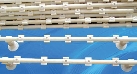 曝氣器是一個系統,以ABS工程塑料為原料,主要部件有:單孔膜空氣擴散器、橡膠膜片、氣管、支承座、堵頭、密封件等。